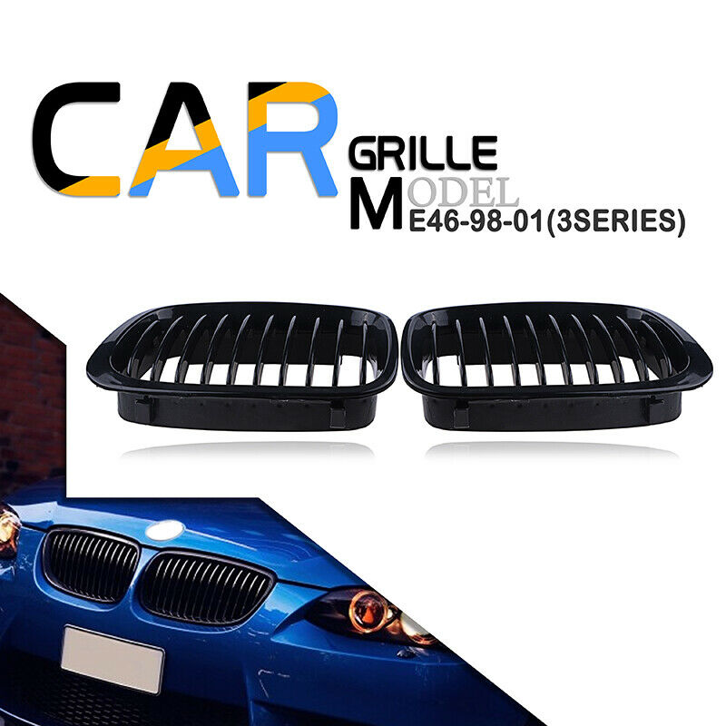 2pcs BLACK Front Grill Grille For BMW E46 Saloon 3 Series 98-01 Pre-facelift