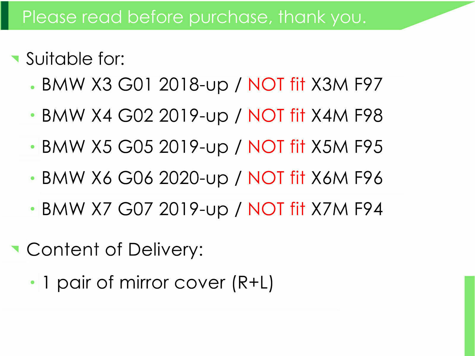 Will Not Fit X3M, X4M And X5M X6M X7M Models!!!!!!!!!!!!!!!!!!!!!!!