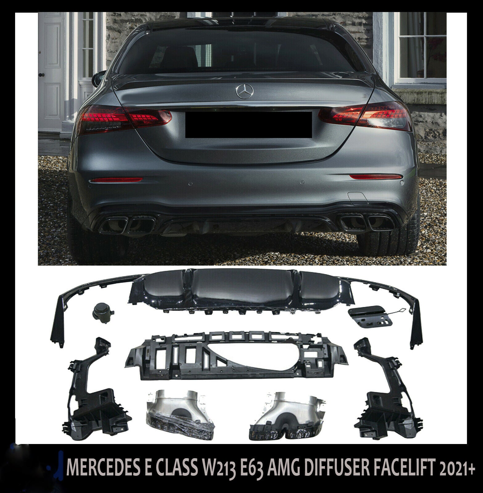 MERCEDES E CLASS W213 SALOON ESTATE E63 LOOK AMG REAR DIFFUSER TAILPIPES 2021+